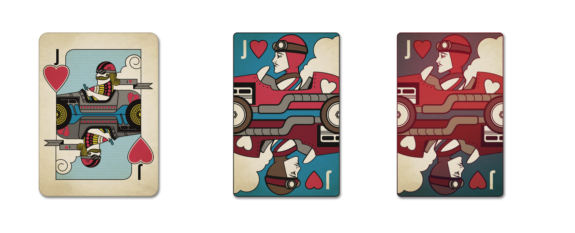 Set of 52 playing cards for Hagerty Insurance's line of 'Car Guy' merchandise available in their online store. Each face card was illustrated to reflect classic racing.